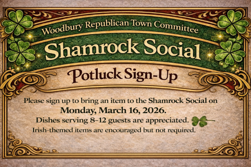 In the spirit of St. Patrick’s Day and the strong community traditions that make Woodbury special, the Woodbury Republican Town Committee invites residents to an evening of fellowship and conversation at its upcoming Shamrock Social on Monday, March 16, 2026, from 7:00 to 9:00 p.m. at the Woodbury Senior Community Center, 281 Main Street South.